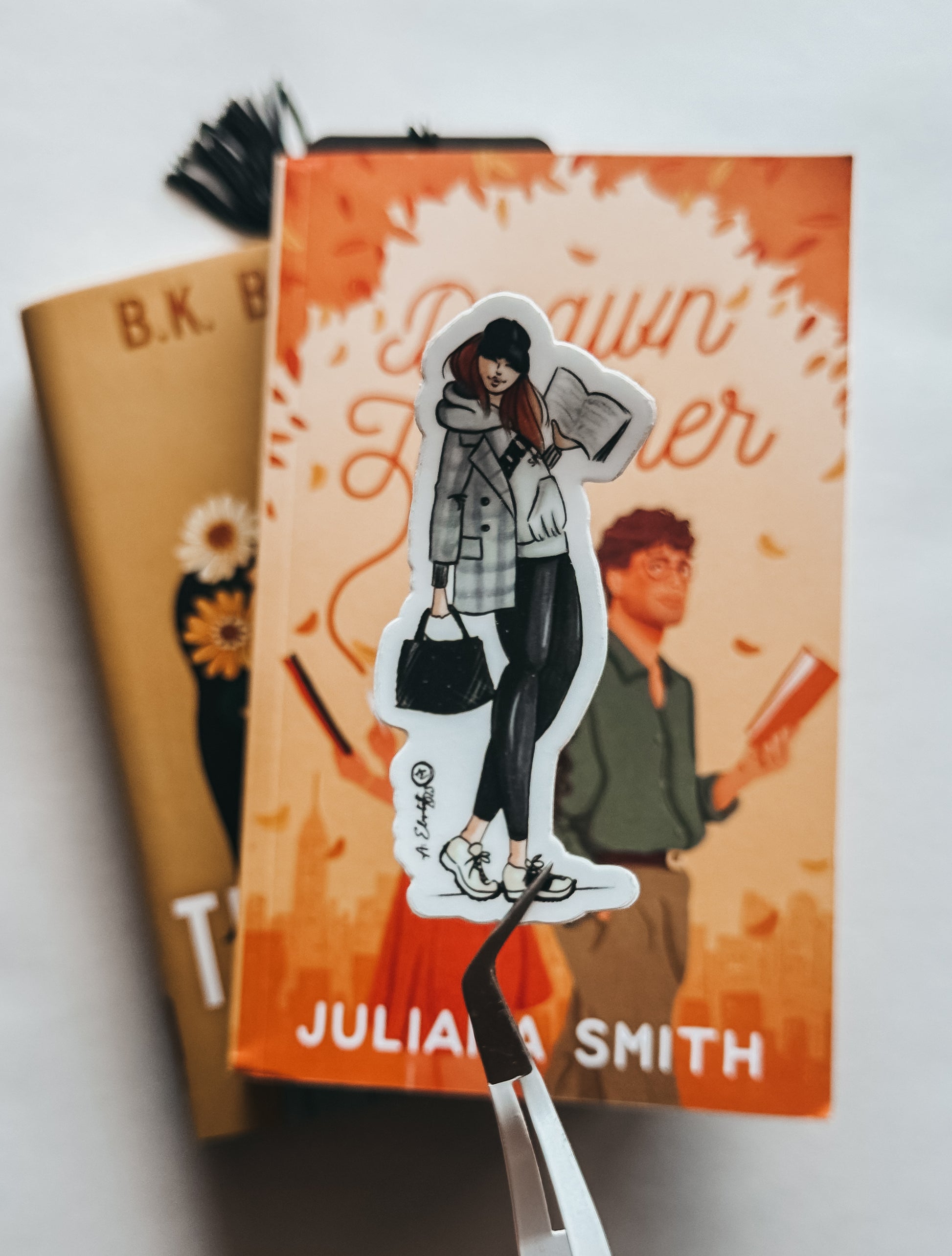 Perfect for readers who take their stories everywhere, this die-cut sticker features a chic book lover bundled up in a cozy coat, coffee in hand, and a novel tucked under her arm. Printed on durable, waterproof vinyl, it’s ideal for decorating laptops, water bottles, journals, e-readers, and more. A trendy little reminder that there’s always time for a good book—no matter where the day takes you.